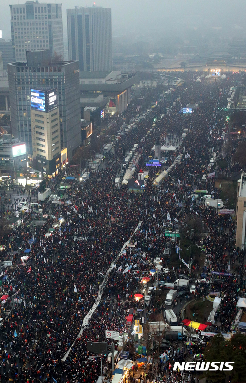 দক্ষিণ কোরিয়ার প্রেসিডেন্ট পার্ক গুন হে’র পদত্যাগ দাবিতে পদত্যাগের দাবিতে দেশটির ইতিহাসে অন্যতম বড় ধরনের সমাবেশ অনুষ্ঠিত হয়েছে। যেটাকে বলা হচ্ছে ১৯৮০ সালের পর সবচেয়ে বড় সমাবেশ। গতকাল ১৯ লাখ লোক সমাবেশে যোগ দিয়েছে যার মধ্যে সিউলের খোয়াংহোয়ামুনে অনুষ্ঠিত সমাবেশে জনগণের সংখ্যা ছিল ১৫ লাখের মত।