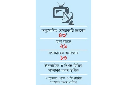 ১৯৯৭ সালে এটিএন বাংলার মাধ্যমে বেসরকারি টিভি চ্যানেল ব্যবসার যাত্রা হয়। খাতটি বিপুল জনপ্রিয়তা পায় একুশে টিভির হাত ধরে। এরপর গত প্রায় দুই দশকে আরো অনেক বেসরকারি চ্যানেল সম্প্রচারে এসেছে। বর্তমানে অনুমোদন পাওয়া বেসরকারি টিভি চ্যানেল রয়েছে ৪৩টি। এর মধ্যে সম্প্রচারে আছে ২৬টি। সম্প্রচারের অপেক্ষায় আছে আরো ১৩টি চ্যানেল।