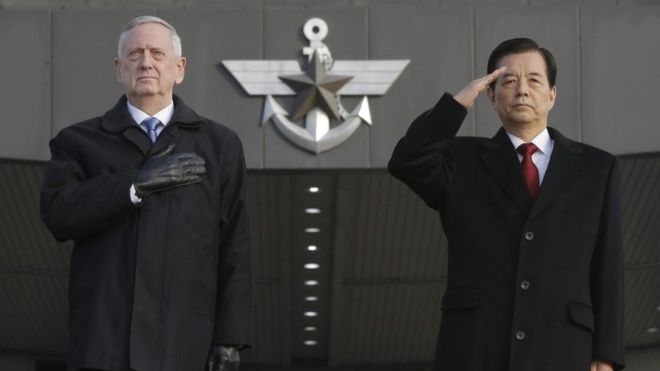 ম্যাটিস সাংবাদিকদের বলেন, তিনি দক্ষিণ কোরিয়ায় মার্কিন ক্ষেপণাস্ত্র প্রতিরক্ষা ব্যবস্থা মোতায়েনের পরিকল্পনা এবং উত্তর কোরিয়ার পারমানবিক কর্মসূচি নিয়ে আলোচনা করেছেন।