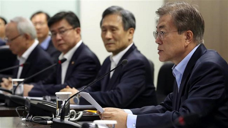 জাতীয় নিরাপত্তা পরিষদের বৈঠকে প্রেসিডেন্ট মুন জে-ইন (ডানে)