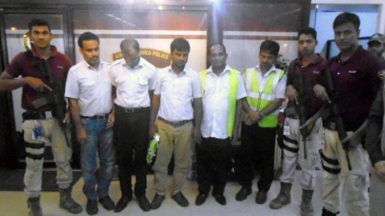 গ্রেফতার ব্যক্তিরা হলেন, বিমানের লোডার শামীম হাওলাদার, লাভলু মিয়া, ট্রাফিক হেলপার নজরুল ইসলাম, মনিরুল ইসলাম, আবুল কালাম আজাদ ও আমিরুল ইসলাম।