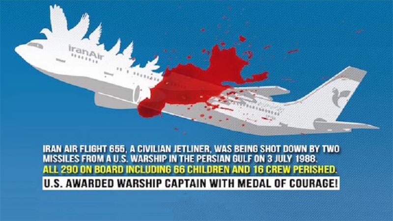 পশ্চিমা মদদে ইরানের বিরুদ্ধে যুদ্ধ শুরু করে পরাজিত হওয়ার দ্বারপ্রান্তে উপনীত সাদ্দামের মতো একজন অপরাধীকে রক্ষা করতেই ইরানি ওই যাত্রীবাহী বিমানটি ভূপাতিত করা হয়। এমনিভাবে ইরানের বিরুদ্ধে ইরাকের আট বছরব্যাপী চাপিয়ে দেয়া যুদ্ধে মিসাইল ও রাসায়নিক অস্ত্রের শিকার হয়েছে গ্রাম-শহরের অগণিত নিরপরাধ মানুষ। এটাই হলো শান্তির প্রতি যুক্তরাষ্ট্রের ভালোবাসা এবং মানবাধিকারের প্রতি তার অঙ্গীকারের নমুনা। সাবেক মার্কিন প্রতিরক্ষামন্ত্রী ক্যাসপার ওয়েন বার্গারের মতে অবশ্য ঐ ‘মর্মন্তুদ ঘটনাটি হচ্ছে ইরানী জাতিকে মূল থেকে ধ্বংস করে দেয়ার চক্রান্তেরই অংশ।’