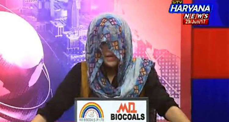 সরকারের এমন ব্যতিক্রমী সিদ্ধান্তের প্রতিবাদ অভিনব উপায়ে জানাল হরিয়ানার এক নারী সংবাদ উপস্থাপক। টেলিভিশনে সংবাদ পড়লেন ওড়না দিয়ে পুরো মুখ আবৃত করে।