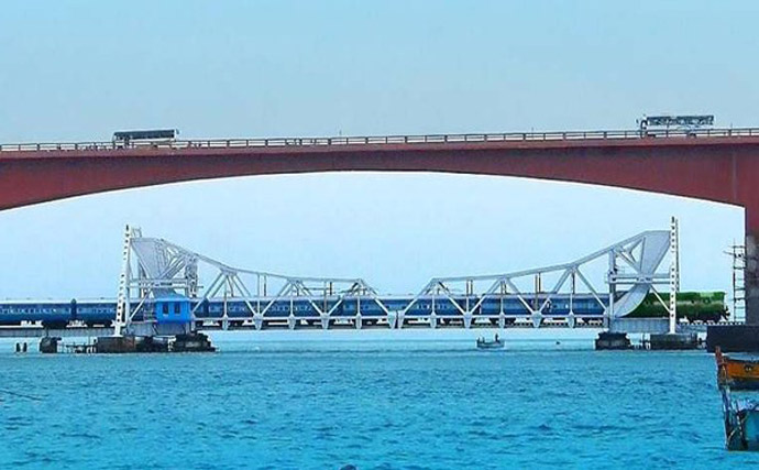 ৫। পাম্বান সেতু, ভারত: রামেশ্বরমে পাম্বান সেতু ৬৭৭৬ ফুট দীর্ঘ। সমুদ্রের উপরে তৈরি এই সেতু দিয়ে ভারতীয় রেল যাত্রা করে। ঘূর্ণিঝড় প্রবণ এই এলাকায় প্রচণ্ড জোরে বাতাস বয়। যার ফলে রেল চলাচল করা অত্যন্ত ঝুঁকিপূর্ণ।