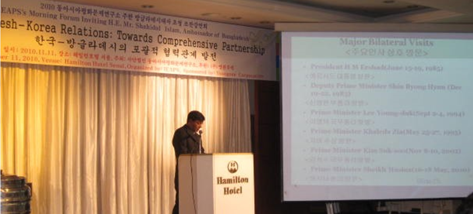 ২০১০ সালে বাংলাদেশ-কোরিয়া সম্পর্কের উপর প্রেজেন্টেশন দিচ্ছেন এম শহিদুল ইসলাম