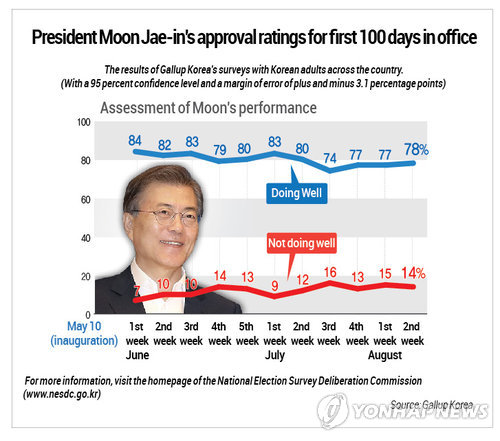 বিগত ১০০দিনে প্রেসিডেন্ট মুনের জনপ্রিয়তার হার