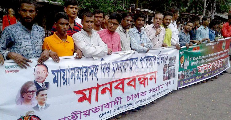 প্রেসক্লাবে জাতীয়তাবাদী চালক সংগ্রাম দলের এক সমাবেশে জাতীয়তাবাদী দেশ বাঁচাও মানুষ বাঁচাও আন্দোলেনের সভাপতি কে এম রকিবুল ইসলাম রিপন বলেন, ‘মিয়ানমার সেনাবাহিনী কর্তৃক রোহিঙ্গা মুসলমানদের গণহত্যা, ধর্ষণ এবং তাদের ঘর-বাড়ি জ্বালিয়ে দেয়ার ঘটনার পর জাতিসংঘসহ সারা বিশ্বের বিবেকবান মানুষ তার প্রতিবাদ করলেও মিয়ানমার সরকার তাতে কর্ণপাত করছে না। মিয়ানমারের চলমান সহিংসতা মধ্যযুগীয় বর্বরতা হার মানিয়েছে। এর দায়ে দেশটির রাষ্ট্রীয় পরামর্শদাতা অং সান সুচির শাস্তি হওয়া উচিৎ।’
