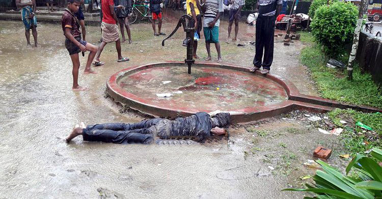 বুক চাপড়াচ্ছেন আর বিলাপ করছেন। তার আশপাশে অনেক শিশু জড়ো হলেও নিজের সন্তানকে দেখছেন না তিনি। কোনোভাবেই তার কান্না থামানো যাচ্ছে না। একপর্যায়ে বৃষ্টির পানিতে গড়াগড়ি করতে করতে জ্ঞান হারিয়ে ফেলেন তিনি।