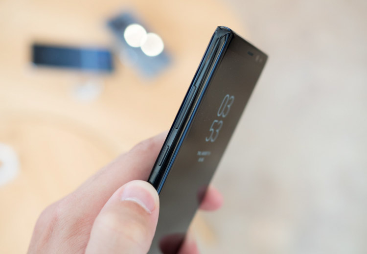 ইনফিনিটি ডিসপ্লে: গ্যালাক্সি নোট ৮ ফ্ল্যাগশিপ ডিভাইসটি নজরে কেড়েছে আকর্ষণীয় ডিসপ্লের কারণে। গ্যালাক্সি এস৮ ও এস৮ প্লাসের মতই এতে রয়েছে ৬.৩ ইঞ্চি বেজলহীন ডিসপ্লে। যার রেজুলেশন হলো ১৪৪০×২৯৬০ পিক্সেল। এটির উপরের দিকে ফ্রন্ট ক্যামেরা ও আইরিশ স্ক্যানার সেন্সর রয়েছে। তবে দুই পাশে ও নিচে নেই অতিরিক্ত কোনো বর্ডার।