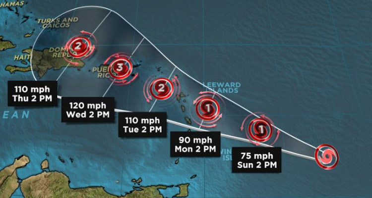 ক্যারিবীয় অঞ্চলের যুক্তরাষ্ট্র ও ব্রিটিশ ভার্জিন দ্বীপপুঞ্জ, সেন্ট মার্টিন, সেন্ট বার্টস, সাবা, সেন্ট ইউস্টাশিয়াস ও অ্যাঙ্গুইলায় হারিকেন পর্যবেক্ষণ সতর্কতা জারি করা হয়েছে।
