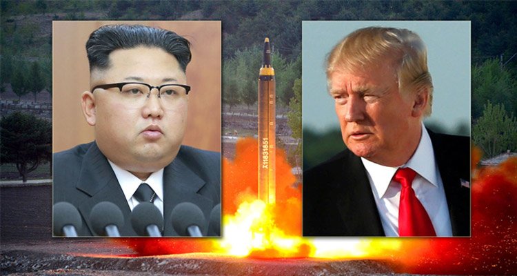 trump-kimসম্প্রতি পুরো বিশ্বের সতর্কবার্তা অগ্রাহ্য করে ভয়ঙ্কর সামরিক দাপট দেখাচ্ছে উত্তর কোরিয়া। চলতি মাসেই পরমাণু বিস্ফোরণ ঘটিয়েছে দেশটি। তাছাড়া জাপানের উপর দিয়ে ক্ষেপণাস্ত্র ছুড়ে পুরো এশিয়া-প্যাসিফিক অঞ্চলের উত্তেজনা বাড়িয়ে দিয়েছে উত্তর কোরিয়া।