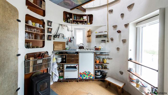 ভেতরটা যেমন: শস্যগুদাম থেকে তৈরি বাড়িটির ভেতরের সবকিছু পুর্নব্যবহার করা হচ্ছে৷ ইয়ান কর্বস দেখাতে চেয়েছেন, টেকসই বাড়ি তৈরি সত্যিই সম্ভব৷ স্থপতি রান্নার ওভেনটি ছাড়া নতুন আর কিছুই ব্যবহার করছেন না তাঁর বাড়িতে৷