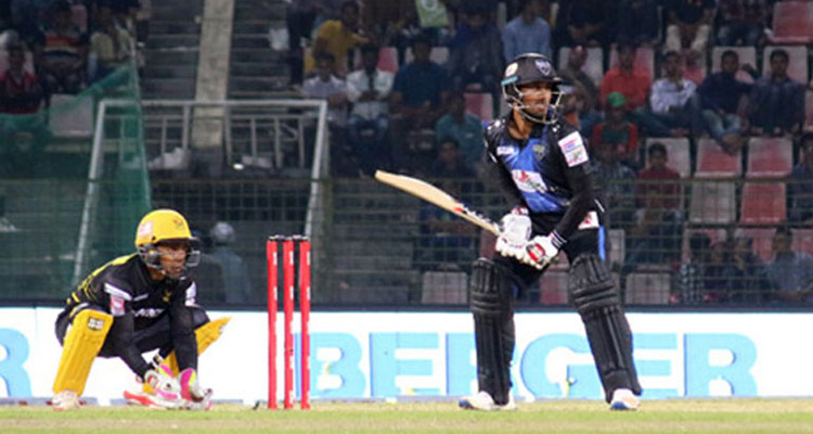 তবে খেলার মূল পার্থক্য গড়ে দেয় শাহরীয়ার নাফীস ও মোহাম্মদ মিথুনের ৭৫ রানের জুটি। মিথুন যখন ৪৬ রানে আউট হয়ে সাজঘরে ফেরেন তখন ম্যাচ ঝুলে ছিল দু’দলের পক্ষেই। নাফীসের সঙ্গে তখন জুটি বাঁধে ব্রিটিশ অলরাউন্ডার রবি বোপারা। নাফীস ব্যক্তিগত ৩৫ রানে আউট হলেও, বোপারা ৩৯ রানে শেষ পর্যন্ত অপরাজিত ছিল। শেষ দিকে থিসারা পেরারা ২০ রান করে বোপারাকে শেষ পর্যন্ত সঙ্গ দেন।