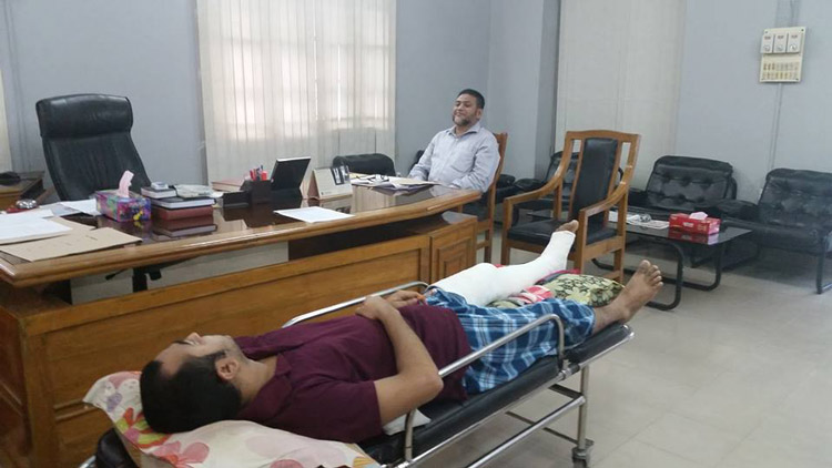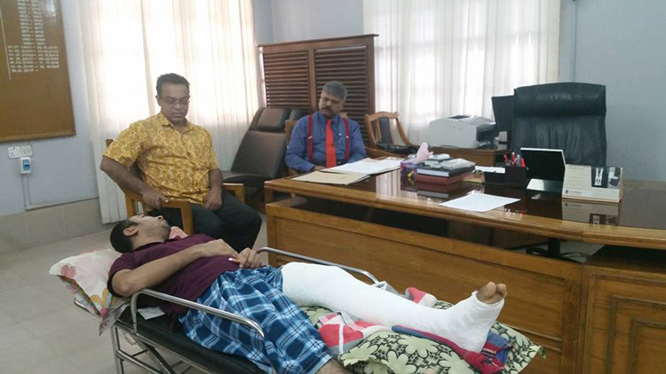 লিখিত পরীক্ষা শেষে ভাইভা পরীক্ষার জন্য তিনি বিভাগীয় কর্তৃপক্ষ এর নিকট হাসপাতালে যেয়ে তার ভাইভা নেয়ার অনুরোধ জানালেও অনুরোধে সাড়া না পাওয়ায় প্লাস্টার করা ভাঙ্গা পা নিয়েই ভাইভা কেন্দ্রে এসে হাজির হন।
