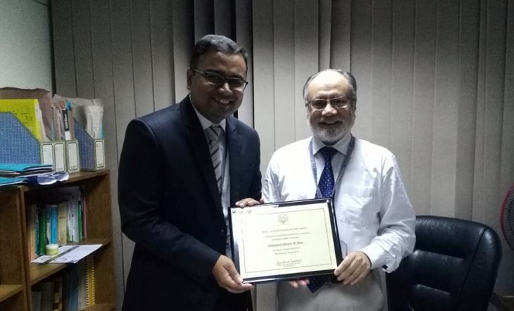 বিভাগীয় প্রধান প্রফেসর ডঃ আ ফ ম ইউসুফ হায়দারের সাথে মোস্তাক আল আমিন
