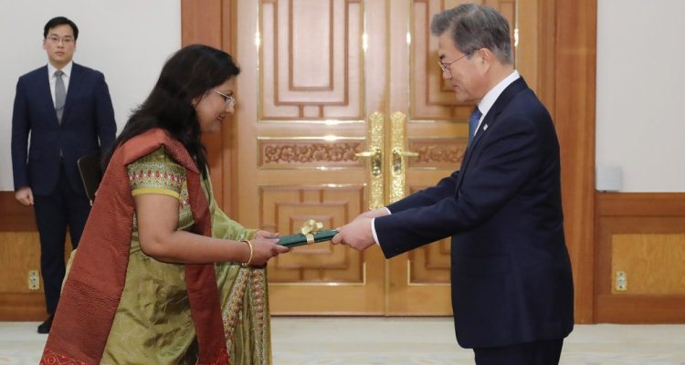 দক্ষিণ কোরিয়ার প্রেসিডেন্ট মুন জে ইনের কাছে পরিচয়পত্র পেশ করেছেন বাংলাদেশের নতুন রাষ্ট্রদূত আবিদা ইসলাম। আজ বিকেলে দক্ষিণ কোরিয়ার প্রেসিডেন্টের কার্যালয় ছং ওয়া দে’তে তিনি পরিচয়পত্র পেশ করেন। কোরিয়ান সরকারের রীতি অনুযায়ী যেকোন রাষ্ট্রদূত দক্ষিণ কোরিয়ায় দ্বায়িত্ব গ্রহণ করলে প্রেসিডেন্টের সাথে সৌজন্য সাক্ষাতে মিলিত হন এবং পরিচয়পত্র পেশ করেন।