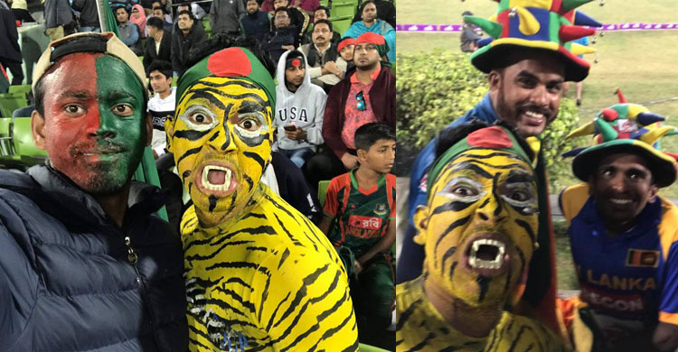 কুয়েতে বাংলাদেশি মালিকানাধীন হর্সকম সিকিউরিটি অ্যান্ড ক্লিনিং কোম্পানির স্পন্সরে ২১ জানুয়ারি ত্রিদেশীয় ওয়ানডে সিরিজের ফাইনাল খেলা দেখতে বাঘ সেজে গ্যালারিতে ছিলো ক্রিকেট ভক্ত টাইগার মারুফ।