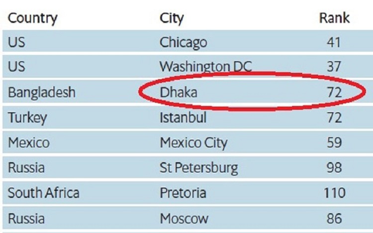 লন্ডনভিত্তিক ইকোনোমিস্ট গ্রুপের এই রিসার্চ অ্যান্ড অ্যানালাইসিস ইউনিটের ওয়ার্ল্ডওয়াইড কস্ট অব লিভিং ইনডেক্স ২০১৮ অনুযায়ী, গতবছরের প্রতিবেদনে বাংলাদেশের রাজধানীর ঢাকার অবস্থান ছিল ৬২ নম্বরে। অর্থাৎ, এই এক বছরে জীবনযাত্রার ব্যয় কমায় সূচকে ঢাকার অবস্থানের পরিবর্তন ঘটেছে ১০ ধাপ।
