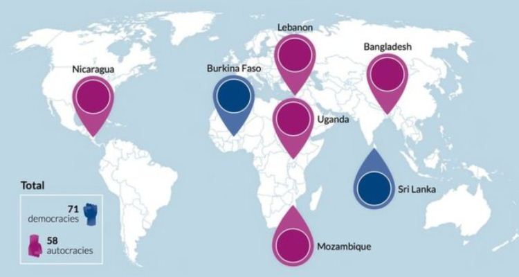 রিপোর্টে ১২৯ টি দেশের মধ্যে ৫৮ টি দেশ এখন স্বৈরশাসনের অধীন এবং ৭১ টি দেশকে গণতান্ত্রিক বলে বর্ণনা করা হয়েছে। ২০১৬ সালে তাদের আগের রিপোর্টে বলা হয়েছিল, বিশ্বের ৭৪টি দেশে গণতান্ত্রিক এবং ৫৫টি দেশে স্বৈরতান্ত্রিক শাসন চলছে।