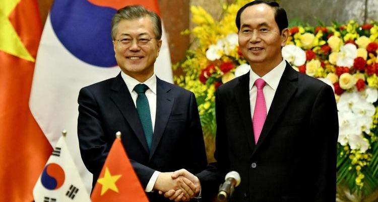দুইদেশের বাণিজ্যিক উন্নতি সাধনের লক্ষ্যে ১০০ বিলিয়ন ডলারের দ্বিপাক্ষিক চুক্তি স্বাক্ষর করেছে ভিয়েতনাম ও দক্ষিণ কোরিয়া। শুক্রবার দক্ষিণ কোরিয়ার প্রেসিডেন্ট মুন জে ইন ভিয়েতনাম সফরে দেশটির প্রেসিডেন্ট ত্রান দাই কুয়াংয়ের সঙ্গে সাক্ষাৎ করেন।