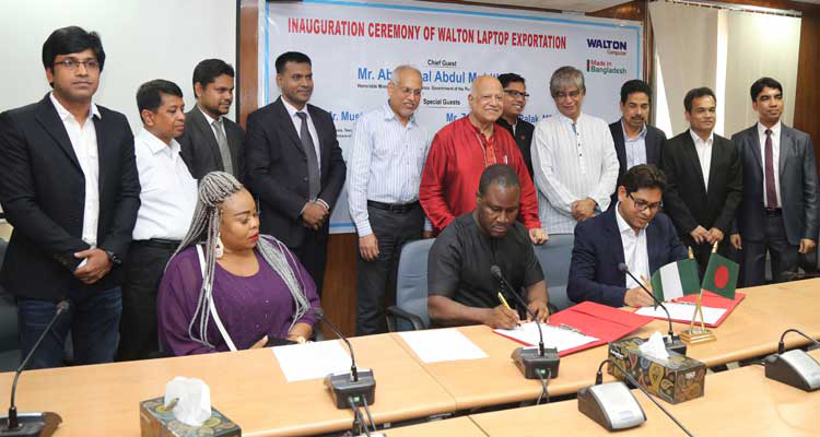 নাইজেরিয়ায় ল্যাপটপ রফতানি কার্যক্রম উদ্বোধন উপলক্ষে নাইজেরিয়ার একটি প্রতিষ্ঠানের সঙ্গে ওয়ালটনের আনুষ্ঠানিক চুক্তি সম্পন্ন হলো বুধবার বিকেলে সচিবালয়ে অর্থ মন্ত্রণালয়ের সভাকক্ষে। ‘ইনঅগোরেশন সিরিমনি অব ওয়ালটন ল্যাপটপ এক্সপোর্টেশন’ শীর্ষক অনুষ্ঠানের প্রধান অতিথি ছিলেন অর্থমন্ত্রী আবুল মাল আবদুল মুহিত। বিশেষ অতিথি ছিলেন ডাক, টেলিযোগাযোগ ও তথ্যপ্রযুক্তি মন্ত্রী মোস্তাফা জব্বার এবং তথ্য ও যোগাযোগ প্রযুক্তি প্রতিমন্ত্রী জুনাইদ আহমেদ পলক।