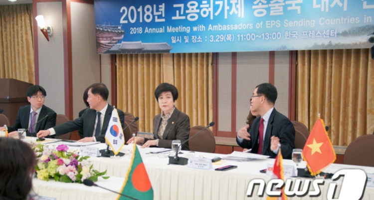গতকাল বৃহস্পতিবার ইপিএস কর্মী প্রেরণকারী ১৬ টি দেশের রাষ্ট্রদূতদের সাথে মিটিং করেছে সদ্য নিযুক্ত কর্মসংস্থান ও শ্রমমন্ত্রী কিম ইয়ং জু। মন্ত্রী এই বৈঠকেও অবৈধভাবে কর্মরত বিদেশীদের ব্যাপারে কোরিয়ান সরকারের কঠোর অবস্থানের কথা রাষ্ট্রদূতদের জানান। বৈধ সময় শেষে নিজ নিজ দেশে ফেরত যাওয়ার ব্যাপারে কর্মীদের কনসাল্টিং এবং ট্রেনিং করানোর জন্য উদ্যোগের কথাও তিনি উল্লেখ করেন। সিউলস্থ বাংলাদেশের রাষ্ট্রদূত আবিদা ইসলাম উক্ত বৈঠকে উপস্থিত ছিলেন।