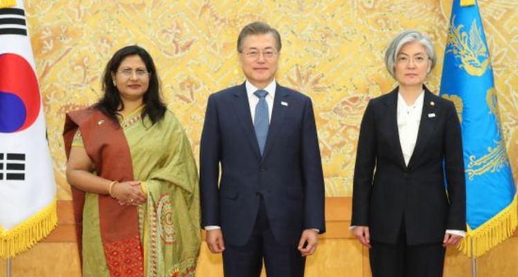 দক্ষিণ কোরিয়ার প্রেসিডেন্ট মুন জে ইন এবং পররাষ্ট্রমন্ত্রী খাং খিয়ং হোয়া’র সাথে রাষ্ট্রদূত আবিদা ইসলাম