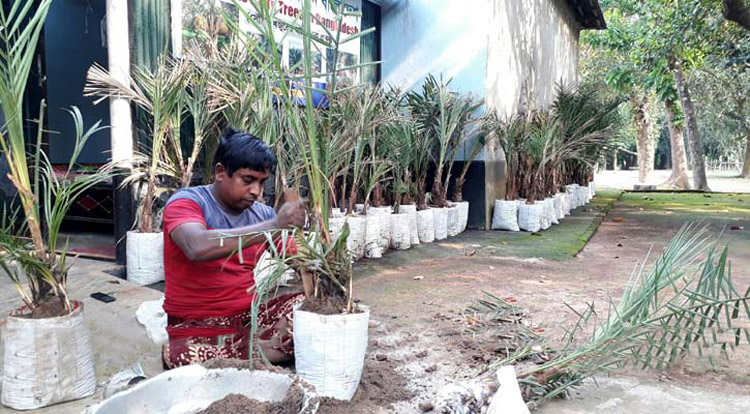 খেজুরচারা রোপণ করার নিয়ম- ৩ফুট দীর্ঘ, ৩ফুট প্রস্ত এবং ৩ ফুট গভীর করে গর্ত করতে হবে। ওই গর্তের অর্ধেক মাটির সাথে অর্ধেক ভিটি বালু এবং ৩০ কেজি শুকনা গোবর মিশিয়ে ওই গত ভরাট করতে হবে। এরপর পানি দিতে হবে। পরে মাটি (দেবে) বসে যাওয়ার পর খেজুর চারা সঠিকভাবে রোপন করতে হবে। রোপনের ৩ মাস পরপর বছরে ৪বার রাসায়নিক সার ও মাল্টিমিক্স (ঔষধ) প্রয়োগ করতে হবে। বর্ষার আগে ও পরে জৈব সার দিতে হবে। যে কোনো মাটিতে খেজুর বাগান করা সম্ভব। তবে বৃষ্টির পানি যাতে না জমে এমন স্থানে চারা লাগাতে হবে। তবে রোদ থাকতে হবে। প্রতিবছর বাগানে একটি চারার পেছনে প্রায় ২ হাজার টাকা খরচ হয়।