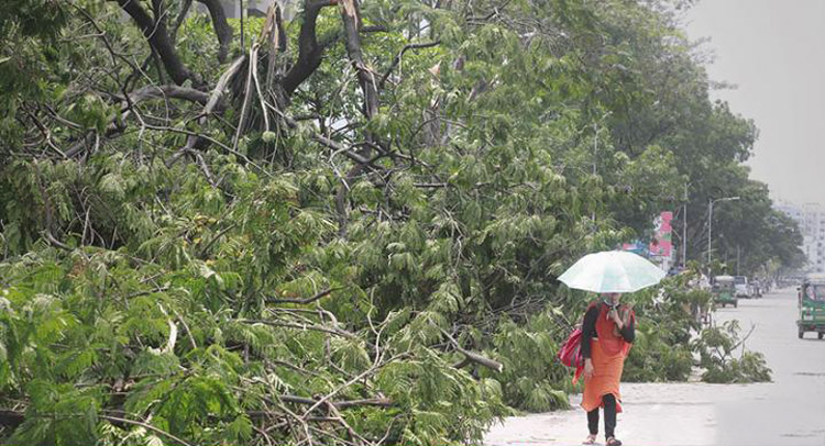 রাজধানীর বাড্ডা এলাকার প্রগতি সরণিতে দেখা গেছে, দমকা বাতাসে কারো ছাতা উড়ে গেছে। এক রিকশা চালক বাতাসের প্রচণ্ডতায় আতঙ্কিত হয়ে রিকশা ছেড়ে দৌঁড়ে নিরাপদে আশ্রয় নেন। এক মোটরসাইকেল চালককে রাস্তার মাঝে আইল্যান্ড ঘেঁষে দাঁড়িয়ে থাকতে দেখা গেছে।