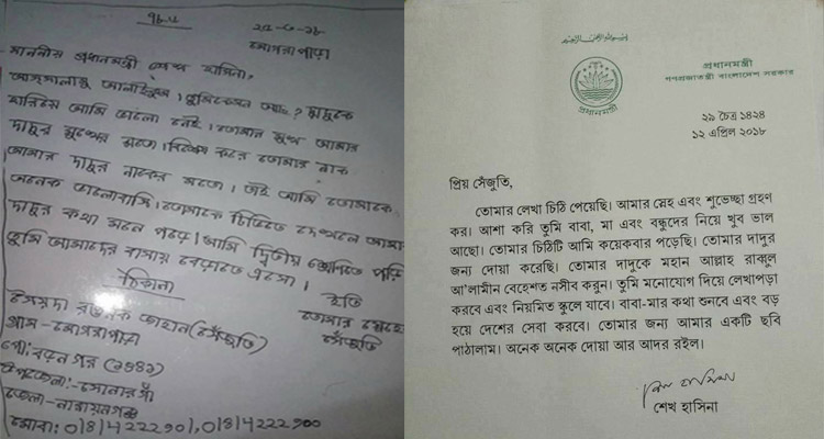 দ্বিতীয় শ্রেণির সেই ছাত্রীর চিঠির জবাব দিলেন প্রধানমন্ত্রী