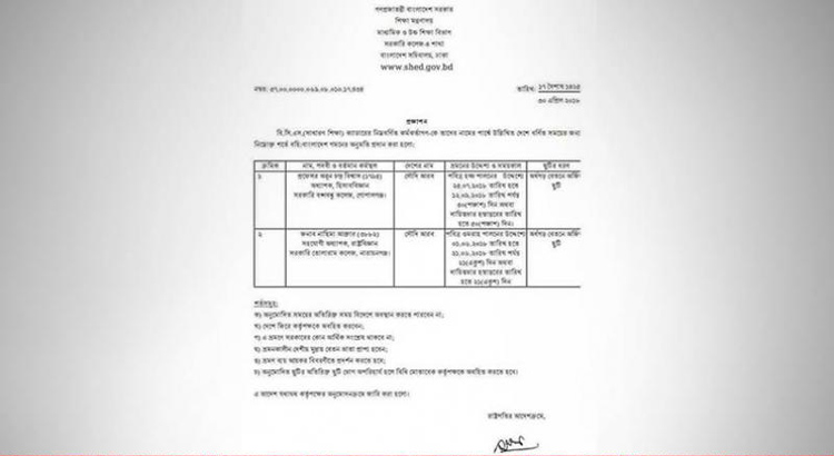 আদেশের সত্যতা যাচাইয়ের জন্য শিক্ষা মন্ত্রণালয়ের মাধ্যমিক ও উচ্চশিক্ষা বিভাগের উপসচিব মুরশিদা শারমিনের সঙ্গে যোগাযোগ করা হলে তিনি বলেন, ‘বৃহস্পতিবার অফিসে গিয়ে জেনে জানাতে পারবো।’
