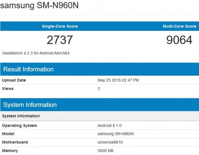 note9প্রায় সকল অ্যান্ড্রয়েড ডিভাইসকে প্রসেসিং ক্ষমতায় হারিয়ে গিকবেঞ্চের সাইটে আত্মপ্রকাশ করেছে স্যামসাং গ্যালাক্সি নোট ৯। নিজস্ব এক্সিনস ৯৮১০ প্রসেসর স্ন্যাপড্রাগন ৮৪৫ এর চাইতে যে বেশ এগিয়ে তা প্রমাণ করেছে স্যামসাং।