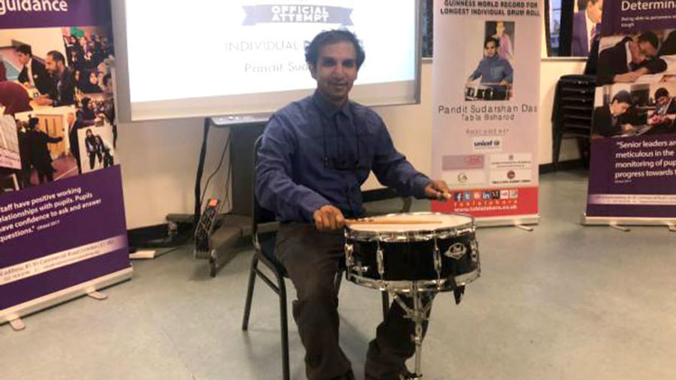টানা তৃতীয়বারের মতো গিনেস বুক রেকর্ডে নাম লেখাতে যাচ্ছেন বাংলাদেশি বংশোদ্ভূত ব্রিটিশ তরুণ পণ্ডিত সুদর্শন দাশ। দীর্ঘ ২৫ দিন তবলা ও ২৭ ঘণ্টা ঢোল বাজানোর দুটি বিশ্ব রেকর্ড আছে তার ঝুলিতে। এবার টানা ১৪ ঘণ্টা ড্রাম বাজিয়ে তৃতীয়বারের মতো গিনেস ওয়ার্ল্ড রেকর্ডের হ্যাটট্রিক গড়তে যাচ্ছেন তিনি।