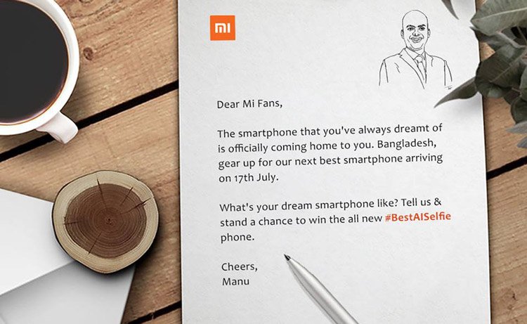 প্রকাশিত ছবিতে দেখা যায়, শাওমি ভারতের ব্যবস্থাপনা পরিচালক মানু কুমার জেইন শাওমি ভক্তদের একটি পত্র দিয়েছেন। সেখানে লেখা, যে স্মার্টফোনটি অফিসিয়ালভাবে আপনার দেশে যাবার যে স্বপ্ন দেখেছিল তা অবশেষে পুরণ হচ্ছে। ব্রান্ডটি বাংলাদেশে আসতে যাচ্ছে। ১৭ জুলাই আমাদের পরবর্তী সেরা ফোনটি বাংলাদেশে আসবে। আপনার স্বপ্নের ফোনটি কেমন হবে? আমাদের বলুন এবং জিতে নিন নতুন সেরা এআই সেলফি ফোন। শাওমি বাংলাদেশের অফিসিয়াল পেইজে শেয়ার করা ছবিটির নিচে স্বপ্নের ফোন সম্পর্কে জানিয়ে জিতে নেয়া যাবে একটি স্মার্টফোন।