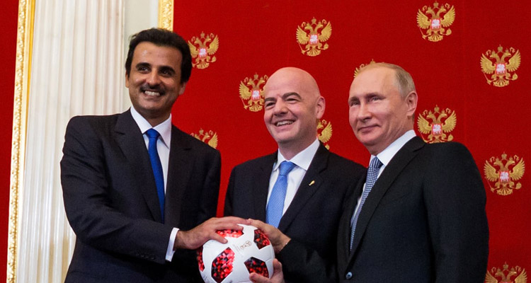 রাশিয়ার প্রেসিডেন্ট ভ্লাদিমির পুতিন রবিবার ফুটবল বিশ্বকাপ আয়োজনের দায়িত্ব আনুষ্ঠানিকভাবে তুলে দিলেন কাতারে আমির শেখ তামিম বিন হামাদ আল থানির কাছে। ‘দ্যা গ্রেটেস্ট শো অন আর্থ’ খ্যাত ফুটবল বিশ্বকাপ আয়োজনের দায়িত্ব হস্তান্তর অনুষ্ঠানের মাধ্যমেই ‘কাতার ফুটবল বিশ্বকাপ-২০২২’ এর গণনা শুরু হয়ে গেলো।