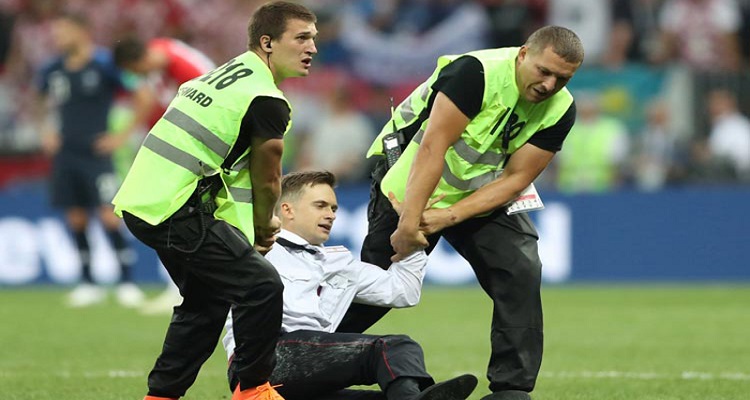 রাশিয়া বিশ্বকাপে অঘটনের শেষ ছিল না। গ্রুপ পর্বেই জার্মানির বিদায় নেওয়া থেকে শুরু করে শেষ ষোলতে আর্জেন্টিনা, স্পেন ও পর্তুগালের টুর্নামেন্ট থেকে ছিকে পড়া ছিল অন্যতম। তবে মাঠের নব্বই মিনিটের লড়াই ছাড়াও ঘটেছে নানা অঘটন। বিশেষকরে রবিবারের ফাইনাল ম্যাচে মস্কোর লুঝনিকি স্টেডিয়ামে খেলা চলাকালিন মাঠের মধ্যে আকস্মিকভাবে ঢুকে পড়েছিলে চার সমর্থক। আর এ নিয়ে শুরু হয়েছে নানা আলোচনা-সমালোচনা-গুঞ্জন।