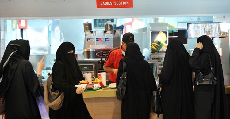 সৌদি আরবে রেস্টুরেন্টে অনাত্মীয় নারী-পুরুষদের আলাদা জায়গায় বসতে হয়।