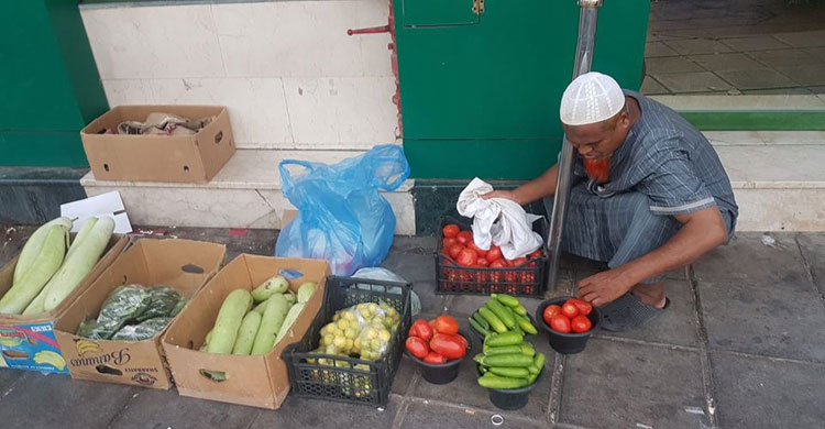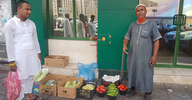 পবিত্র নগরী মদিনার ব্যস্ততম ফুটপাতে গতকাল (শুক্রবার) বিকেলে রাস্তার ওপর একাধিক কার্টন ও ছোটবড় প্লাস্টিকের ঝুড়িতে টমেটো, শশা, লেবু, ঢেঁড়স ও লাউ সাজিয়ে বসেছিলেন ষাটোর্ধ্ব এক বৃদ্ধ। শাকসবজি বেচাকেনার চেয়ে বৃদ্ধের দৃষ্টি রাস্তার ওপর। কিছুক্ষণ পর পুলিশের একটি গাড়ি দেখে পণ্যাদি রেখে বৃদ্ধ হাওয়া! গাড়িটি চলে গেলে আবার ফিরে আসেন তিনি।