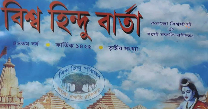 বাংলা বিশ্ব হিন্দু বার্তার( ৪৪তম বর্ষ, কার্তিক ১৪২৫, তৃতীয় সংখ্যা) ১৯-২২ নং পৃষ্ঠায় নৃসিংহ প্রসাদ দে-র লেখা ‘হিন্দু সমাজ ভাবনা’র একটি অংশে মুসলিমদের ভোটাধিকার বাদ যাওয়ার জন্য জোরে সওয়াল করা হয়েছে৷