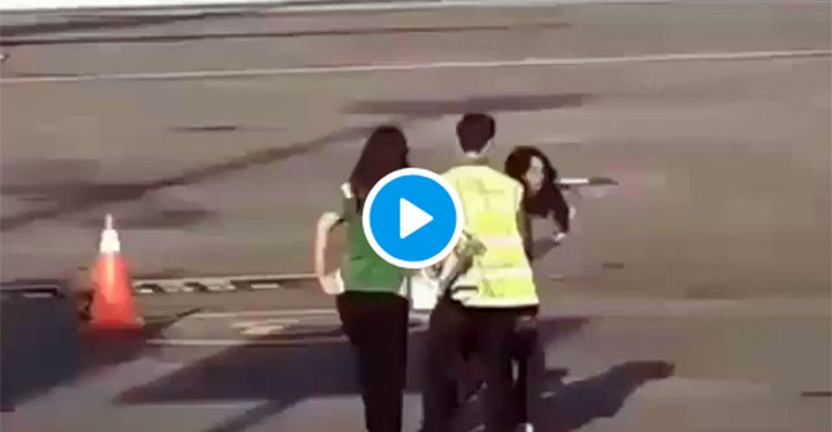 এ ঘটনার একটি ভিডিও ভাইরাল হয়েছে সোশ্যাল মিডিয়ায়। ভিডিওতে দেখা যাচ্ছে, দুইজন নিরাপত্তা কর্মী ওই নারীকে আটকানোর চেষ্টা করছে। আর তিনি তাদের হাত থেকে ছাড়া পাওয়ার জন্য আপ্রাণ চেষ্টা চালিয়ে যাচ্ছেন। এক পর্যায়ে ওই নারী মাটিতে গড়াগড়ি দেয়া শুরু করেন। তিনি হয়তো ভেবেছিলেন রানওয়েতে যদি বিমানটিকে দাঁড় করিয়ে দেয়া যায় তা হলেই ব্যাস। আর হাতছাড়া হবে না বিমান।