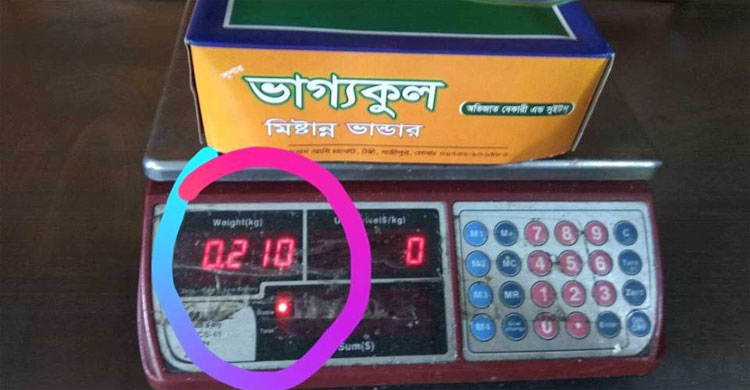 এক কেজি মিষ্টির প্যাকেটেরই ওজন ২১০ গ্রাম! ফলে একজন ক্রেতা মিষ্টি কেনার আগেই ঠকে বসছেন। অর্থাৎ ৫০০ টাকা দরে এক কেজি মিষ্টি কিনে ভোক্তার ১০৫ টাকার মিষ্টি ‘নাই’ হয়ে যাচ্ছে।