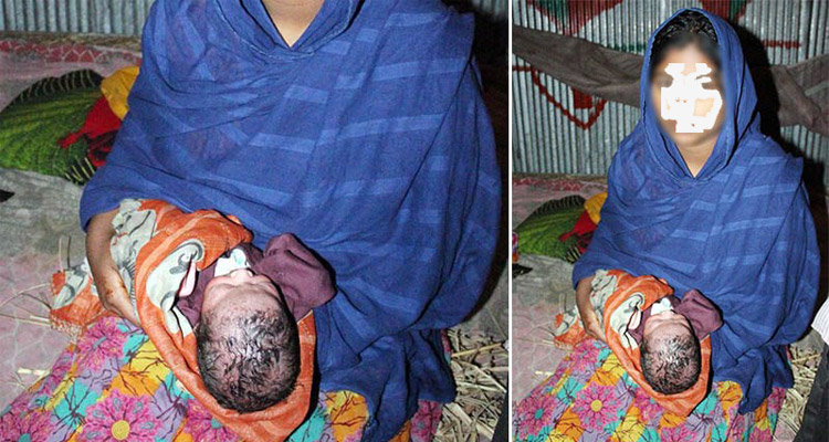 মঙ্গলবার নববধূর শাশুড়ি জাহারা খাতুন বলেন, প্রসবের পর নবজাতককে হত্যার চেষ্টা করেছিল নববধূ। প্রসবের পর টয়লেটের কমোডে ঢুকিয়ে দেয়ার চেষ্টা করায় নবজাতকের মাথায় আঘাত ও শরীরে ময়লা লেগে যায়। পরে বিষয়টি জানাজানি হলে নববধূর বাবার বাড়ির লোকজনকে খবর দেয়া হয়। খবর পেয়ে কৃষ্ণপুর গ্রামের ওয়ার্ড মেম্বার তোফাজ্জল হোসেনের নেতৃত্বে কয়েকজন এসে নবজাতক ও নববধূকে বাবার বাড়ি নিয়ে যান।