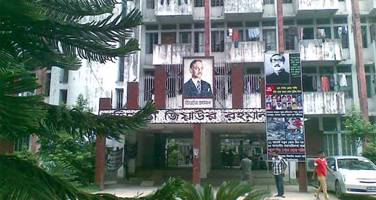 উইকিপিডিয়ার মতে, ১৯৮৮ সালে মরহুম রাষ্ট্রপতি মুক্তিযোদ্ধা শহীদ জিয়াউর রহমানের নামানুসারে হলের নামকরণ করা হয়। এ হলের আবাসিক ছাত্রের সংখ্যা ১২০৫ জন এবং অনাবাসিক ছাত্রের সংখ্যা ৩৭৫২ জন।