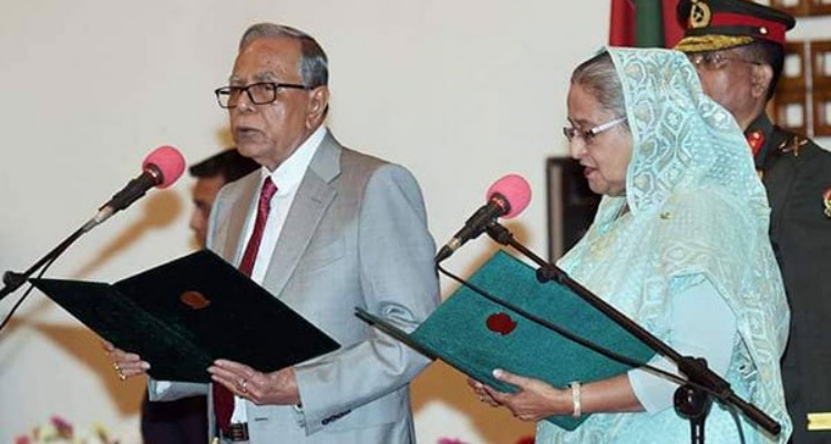 বাংলাদেশ সরকারের টানা তৃতীয় এবং চতুর্থবারের মতো প্রধানমন্ত্রী হিসেবে শপথ নিয়েছেন আওয়ামী লীগ সভাপতি শেখ হাসিনা। সোমবার বিকালে রাষ্ট্রপতি আব্দুল হামিদ তাকে শপথ বাক্য পাঠ করান।