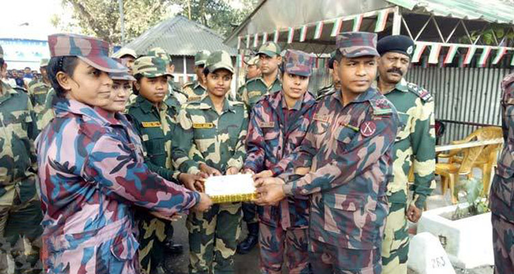 ভারতের প্রজাতন্ত্র দিবস উপলক্ষে বিজিবি সদস্যদের মিষ্টিমুখ করায় বিএসএফ। ছবি: ইউএনবি