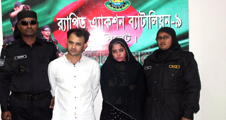 গতকাল শনিবার রাতে সিলেটের অতিরিক্ত পুলিশ সুপার মাঈন উদ্দিন চৌধুরীর নেতৃত্বে র্যাব-৯-এর একটি দল গোপন সংবাদের ভিত্তিতে অভিযান চালিয়ে নগরীর দাড়িয়াপাড়ার মেঘনা এ-২৬/১ ফ্ল্যাটের নিচতলা থেকে তাদের গ্রেপ্তার করে। গ্রেপ্তারকৃতরা হলেন- রোকন উদ্দিন ভূঁইয়া (৪০) ও তার ভুয়া স্ত্রী রিমা বেগম (৩৫)। র্যাবের উপস্থিতি টের পেয়ে কৌশলে পালিয়ে যাওয়ার সময় তাদেরকে গ্রেপ্তার করা হয়।