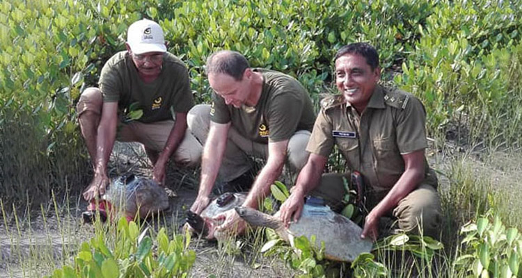 পূর্ব সুন্দরবনের বাটাগুর বাস্কা প্রজেক্টর স্টেশন ম্যানেজার আ. রব জানান, সুন্দরবনের নলিয়ান রেঞ্জের কালাবগী স্টেশনের আওতাধীন সুতারখালী নদীতে বুধবার দুপুরে কুলসুম নামে এক নারী মাছ ধরছিলেন। এক পর্যায়ে তার জালে স্যাটেলাইট ট্রান্সমিটার বসানো কচ্ছপটি ধরা পড়ে। পরে তিনি বন বিভাগের কালাবগী স্টেশনে কচ্ছপটিকে হস্তান্তর করেন। শুক্রবার দুপুরে কচ্ছপটিকে উদ্ধার করে সুন্দরবনের করমজল বন্যপ্রাণী প্রজনন কেন্দ্রে নিয়ে চিকিৎসা দেয়া হচ্ছে।