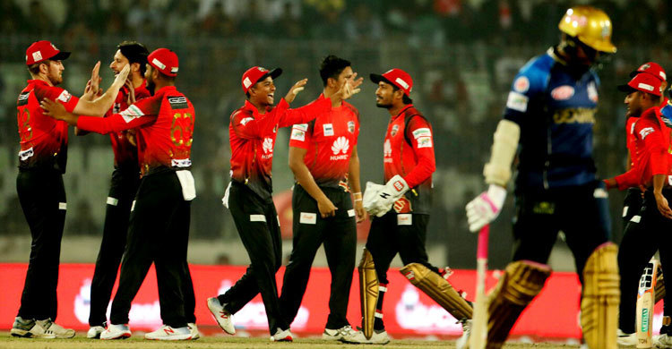 অধিনায়ক ইমরুল কায়েস (৭), শামসুর রহমান শুভ (২), থিসারা পেরেরা (৯) কিংবা মোহাম্মদ সাঈফউদ্দীনের (২) কেউই পারেননি দুই অঙ্কে যেতে। ধরে খেলার আভাস দিয়ে ১৭ বলে ১৮ রান করে আউট হন শহীদ আফ্রিদি।