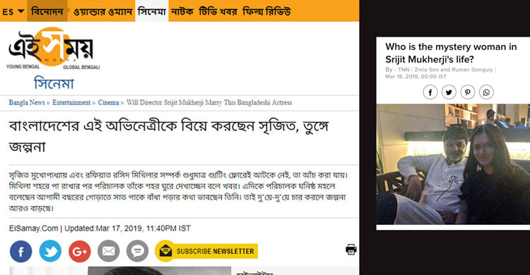 কলকাতার পরিচালক সৃজিত মুখোপাধ্যায়ের সঙ্গে প্রেম করছেন বাংলাদেশের অভিনেত্রী রফিয়াত রসিদ মিথিলা। এমন খবর এখন বাতাসে উড়ছে। কলকাতার অনলাইন ‘এই সময়’ এ নিয়ে একটি খবর প্রকাশ করেছে। আগামী বছরই তারা বিয়ে করছেন এমন খবর দিয়েছে সৃজিত।