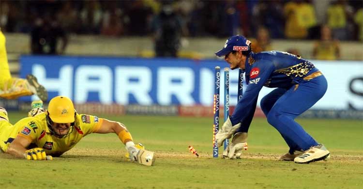 চেন্নাইকে জয়ের দ্বারপ্রান্তে তুলে এনে মালিঙ্গার চতুর্থ বলকে ডিপ পয়েন্টে ঠেলে দিয়ে দ্রুত এক রান নিলেন। কিন্তু ওয়াটসন চাইলেন আবার স্ট্রাইকিংয়ে চলে আসবেন। ফিল্ডারের হাতে বল থাকার পরও তিনি দৌড় দিলেন। ফল যা হওয়ার তাই হলো। ক্রুনাল পান্ডিয়ার সরাসরি থ্রো ধরেই ডি কক ভেঙে দিলেন স্ট্যাম্প।